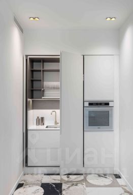 Кухня: варочная панель, вытяжка, встроенный холодильник в колонну, встроенная посудомоечная машина в колонну.