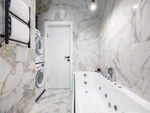 Кроме того, в апартаментах имеется ванная комната с душем и белоснежными полотенцами, а также стиральная машина и сушилка.