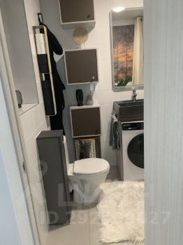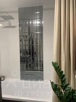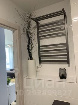Ванная комната: стиральная машинка, зеркало с подсветкой, шкафы, полотенцесушитель электрический, тропический душ.