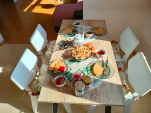 Плотные шторы, стиральная машина, утюг, сушилка. Посуда для приготовления и сервировки еды, духовой шкаф, микроволновка. Все перечисленные и иные удобства доступны для гостей.