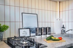 - вся необходимая бытовая техника: варочная панель, посудомоечная машина, микроволновая печь, большой холодильник, стиральная машина, капсульная кофеварка,