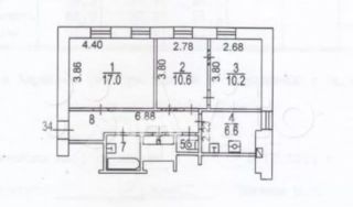 3 комнаты 17м2, 10,6м2, 10,2м2