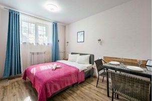 - Квартира с современным дизайном оборудована ортопедическим матрасом, плотными шторами блэкаут, чистым постельным бельем, тапочками, посудой на 2 персоны и Wi-Fi с заботой о Вашем комфорте.