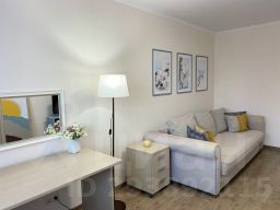 В распоряжении гостей есть: двуспальная кровать с постельным бельём, двуспальный диван, комплект полотенец для каждого гостя, шампунь, гель для душа, мыло. Гостям предоставляются: чайник, телевизор, стиральная машина, сушилка для белья, утюг, СВЧ печь, посуда и кухонная утварь, чай, соль, сахар. Перед каждым заездом проводится профессиональная уборка.