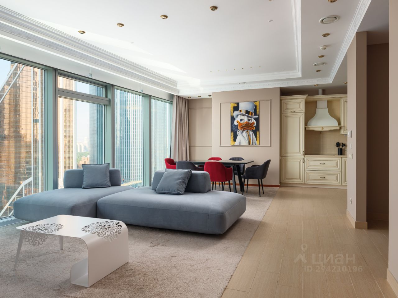 Апартамент расположен на 29 этаже комплекса "Город Столиц", в башне Москва. Имеет самый дорогой во всех смыслах вид на набережную.