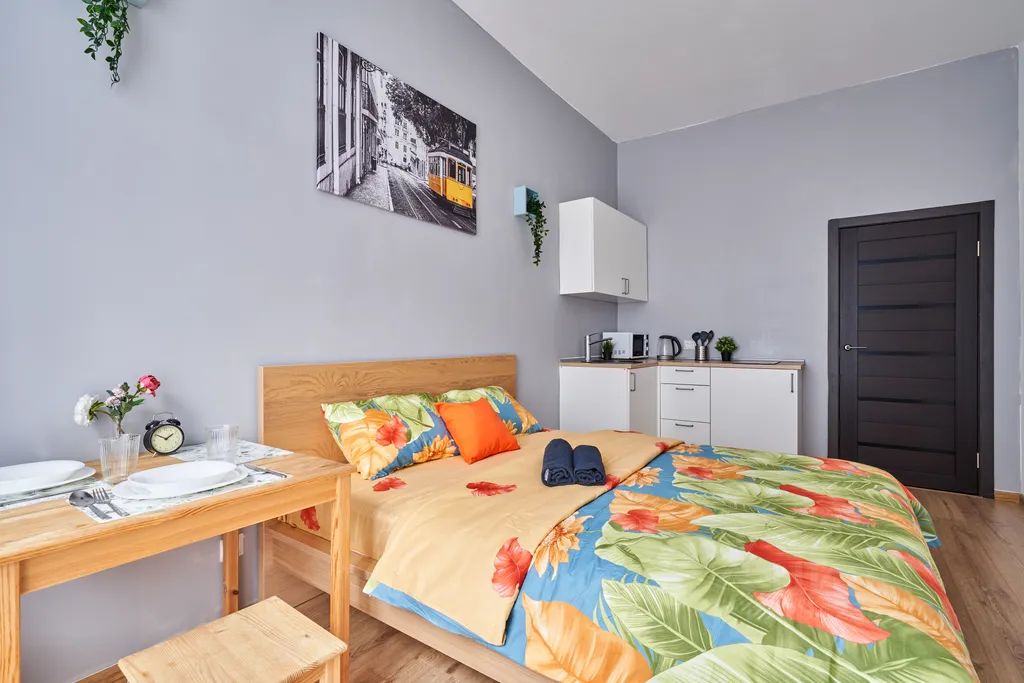 Есть всё необходимое для комфортного проживания: wi-fi, кабельное TV, холодильник, стиральная машина, кухонная плита, СВЧ, шкаф, чистое постельном белье и полотенца, подушки с гипоаллергенным бамбуковым наполнителем, посуда, электрочайник, утюг с гладильной доской, сушилка для одежды, вешалки для одежды, отдельная ванная комната, фен, отопление.