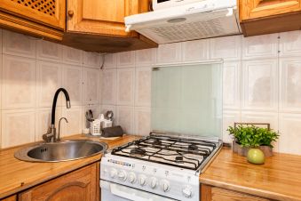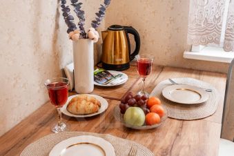 Кухня полностью оснащена техникой и посудой для вкусного ужина.