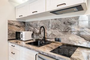 - Апартаменты укомплектованы кондиционером, водонагревателем, электрической плитой, стиральной машиной, чайником, телевизором, холодильником, феном, утюгом и микроволновкой.