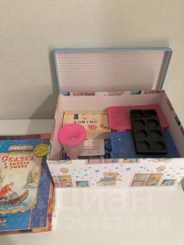Для детей есть коробка с книжками, карандашами и т.д. А так же детское мыло и шампунь без слез)