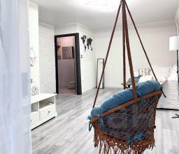В квартире телевизор, Wi Fi, газовая плита с пьезо поджигом, чайник, микроволновка, набор посуды на 6 персон, есть все для приготовления вкусного обеда.