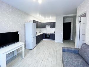 Сдаются светлые уютные апартаменты-студия. Спальня 12 м2 и кухня- гостиная 17.5 м2.