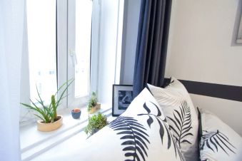 2 отдельные спальни и большая кухня. В каждой комнате большая двуспальная кровать. Диван раскладывается - это полноценное двуспальное место.