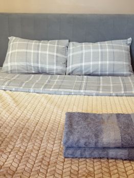 - Постельное белье, качественные подушки,одеяло,плед. Большие, махровые полотенца.