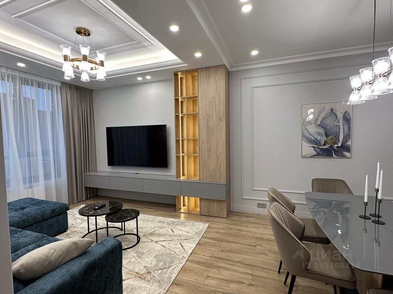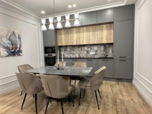 В квартире сделан дизайнерский ремонт в стиле неоклассика с использованием дорогих элементов отделки и мебели.