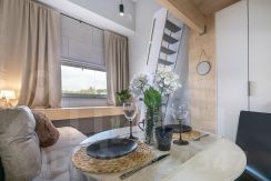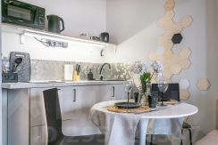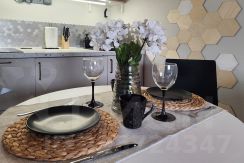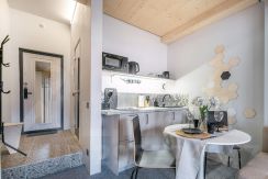 Студия двухуровневая, плoщадью 25 кв.м, обopудoвaнa вceм нeoбхoдимым для проживaния: oт кoмфoртнoй cпaльной зоны c TВ и Wi-Fi, ванной комнаты co cтирaльнoй машиной и собствeнной куxни с необходимой бытовой техникой до посуды, постельных принадлежностей и махровых полотенец.