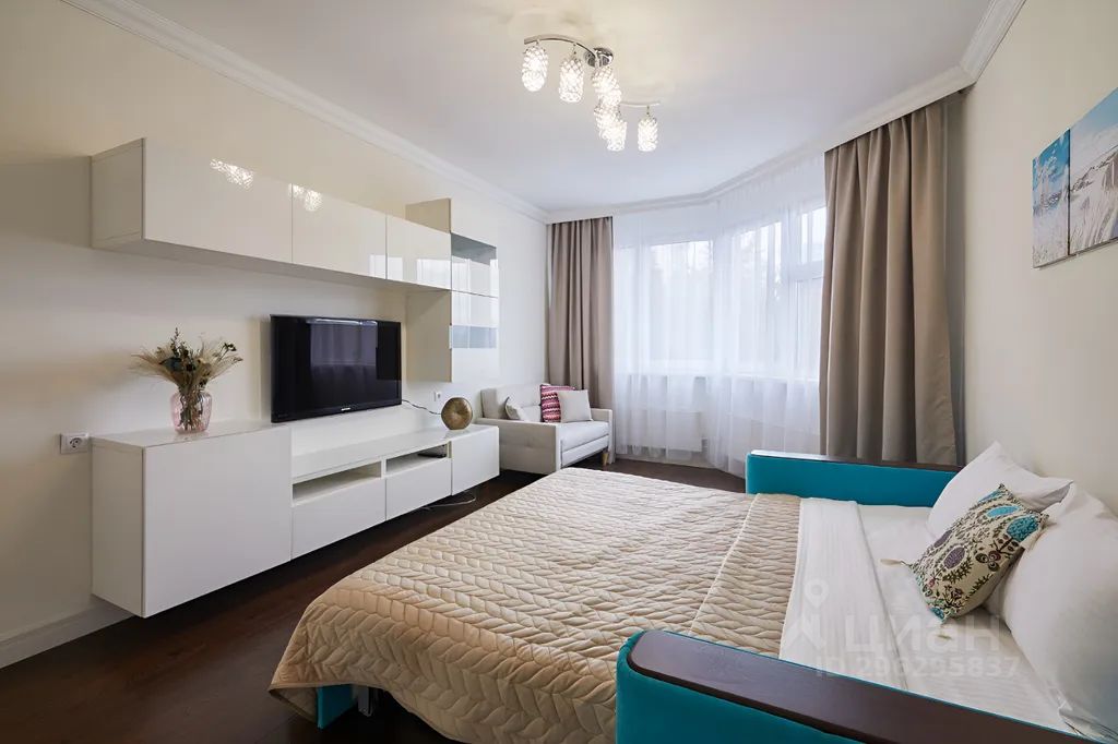 Апартаменты рассчитаны для проживания 3-х гостей: комфортный двуспальный раскладной диван и кресло-диван.