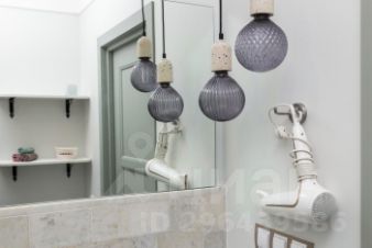 В ванной комнате установлена стиральная машина. Есть утюг и гладильные принадлежности.