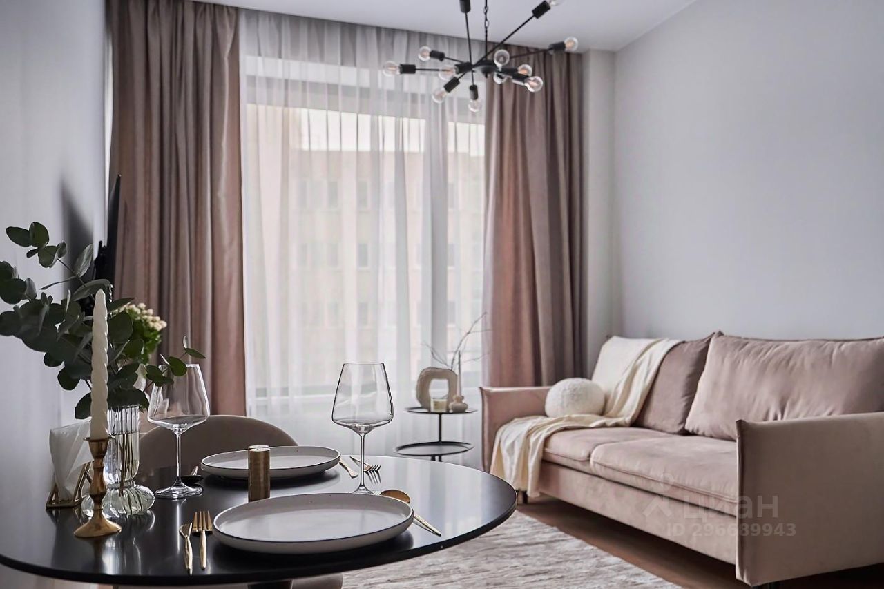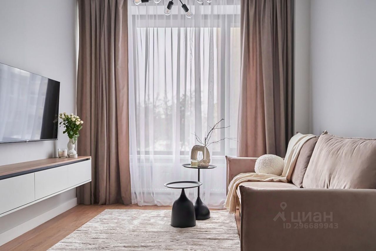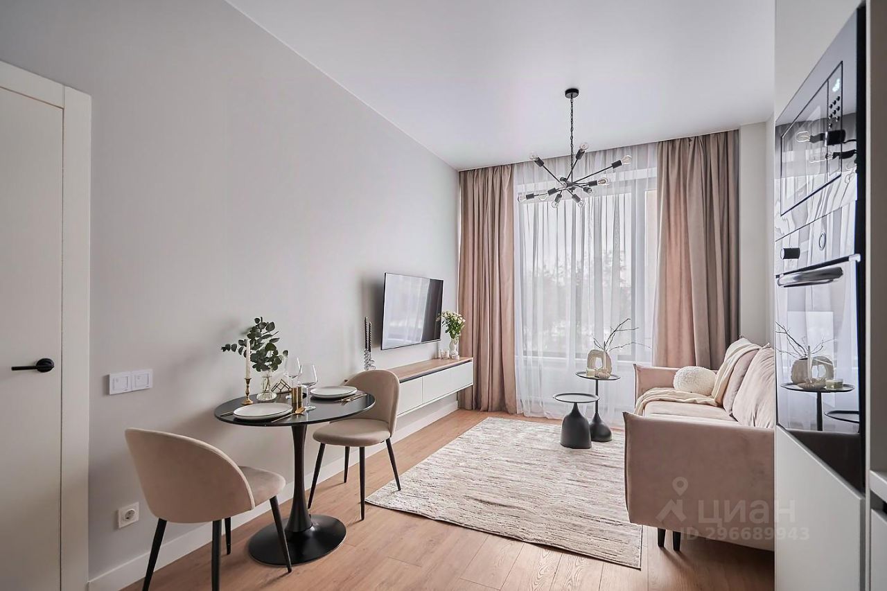 Кухонный гарнитур с варочной поверхностью, вытяжкой, посудомоечной машиной, стиральной машиной. Встроенный духовой шкаф, микровольновая печь, холодильник и морозильная камера. Удобная диванная зона с раскладывающимся диваном, тумбой, тв и журнальными столиками. Спальня со встроенным шкафом, тв. Су с ванной.