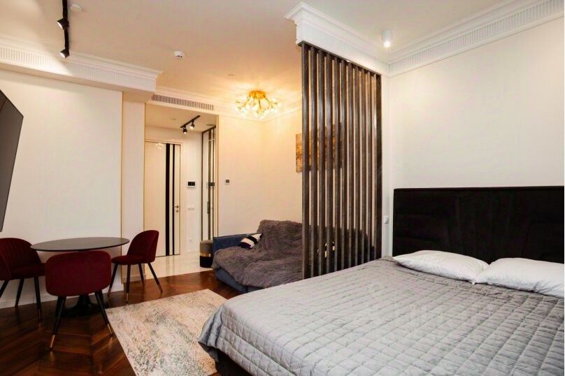 Добро пожаловать в TABALA`S Apartments - апартаменты премиум класса в Москва Сити. Расположение: 30-й этаж Башни Око Вместимость: До 2 гостей (доп. гости обсуждаются и рассматриваются администратором в индивидуальном порядке) Удобства: Апартаменты оборудованы современной кухонной зоной, где установлена электрическая плита, духовой шкаф, СВЧ-печь, посудомоечная машина, винный шкаф, холодильник, чайник и кофе машина, вся необходимая посуда. Спальня с удобной большой кроватью и потрясающим видом. Санузел с душевой кабиной Wi-Fi, система климат-контроль (кондиционер), шторы с электроприводом BLACK- OUT, стиральная машина, сушка, отпариватель. Также в наличии вся необходимая посуда и банные принадлежности. Описание: TABALA`S Apartments - это идеальное место для тех, кто ищет красивое и комфортное жилье в Москве. Апартаменты располагаются на 30-м этаже Башни ОКО, с которого открывается впечатляющий вид на Москву, имеют современный стильный интерьер и уникальный дизайн. Идеально подойдут для романтических свиданий, а также размещения командировочных сотрудников. Для больших и шумных компаний, апартаменты не сдаются. Расположение: Наши апартаменты идеально подойдут для проживания на любой срок до 2 гостей. Будь то деловая поездка или отдых в Москве, TABALA`S Apartments гарантируют вам комфорт и уют. Мы уделяем внимание всем мелочам для комфортного пребывания наших гостей. !!!Правила!!! Время работы отдела бронирования, в течение которого мы готовы ответить на ваш телефонный звонок, 24/7. За 1 час сообщите нам о своём прибытие на адрес. Правила заселения и проживания: 1) Фотография паспорта Для оформления пропуска на вход в апартаменты, направьте нам фотографии паспортов всех проживающих. 2) Несовершеннолетние Если заселяются несовершеннолетние гости, то передвигаться по башне они могут только в присутствии родителей или законных представителей. 3) Заселение/выезд Заселение с 15:00 до 00:00, если позже, то только по согласованию с администратором. Выезд до 13:00 Все гости должны заселяться одновременно. Если вы планируете заселение в разное время просим сообщить об этом заранее! Ночное заселение после 00:00 (по договоренности) - доплата в размере 5 000 руб. Ранний заезд (по договоренности) до 12:00 доплата в размере 3000 руб. Поздний выезд оплачивается в размере суток аренды и обсуждается с администратором. 4) Уборка. Каждый апартамент перед заселением гостя походит генеральную уборку. Уборка по желанию гостя через администратора. 5) Гости Если вы хотите позвать гостей в номер, то вам необходимо сообщить нам об этом заблаговременно (за 1 и более дней). Также направить нам фотографии паспортов гостей (Чтобы им сделали пропуск на вход) Гости могут пройти к вам в промежуток с 15:00 до 22:00 в сопровождение нашего администратора. Точное время прихода гостей, также сообщите нам заранее. 6) Спальные места. Номер предназначен для проживание 2-х гостей (исключения на усмотрение администратора). Диван не раскладывается. Спать на нём категор