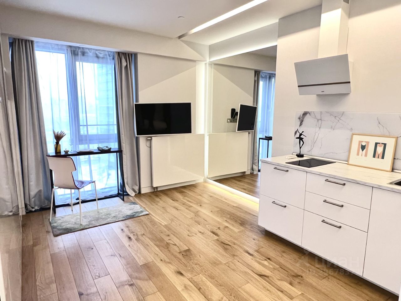 Светлая студия на 8 этажe с панорамными видовыми окнами. Премиальная отделка в апартаменте и в ЖК, теплые полы (плитка Villeroy & Boch, натуральное дерево), центральное кондиционирование.
