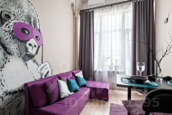 Это двухуровневая квартира-студия, общей площадью 28 кв.м (площадь по полу 19 кв.м.+ 9 кв.м. второй уровень). Потолок, высотой в 4,5 метра и большие светлые окна не смогут оставить вас равнодушными.