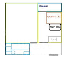 - В спальне кровать 140 см с новым матрасом и местом для хранения, шкаф-купе, рабочее место IKEA Fredde.