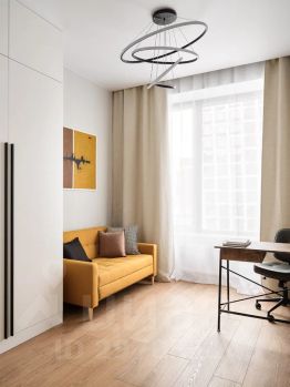 Умный дом, в квартире имеется полноценная спальня, комната - кабинет и кухня-гостиная, два совмещённый санузел с ванной. Вся мебель современная (новая), кухонный гарнитур встроенный со свей необходимой техникой.