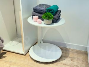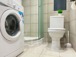 бытовую технику в комнате: фен; утюг, стиральную машину, напольную раскладную сушилку для белья,