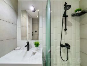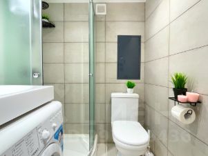 чистый санузел (душ, туалет, зеркало на стене, бойлер для нагрева воды на случай отключения горячего водоснабжения),
