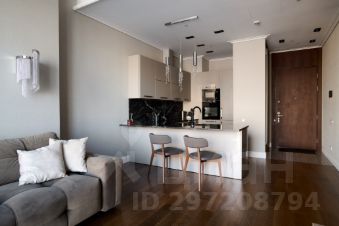 В апартаментах предусмотрены большая кухня-гостиная, обеденная зона, 1 современная спальная комната и ванная комната совмещённая с сан узлами.)