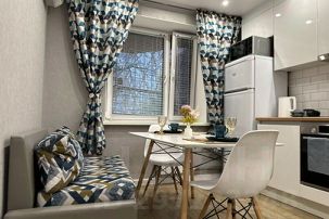 У нас чисто (мы убираем после каждого гостя), все исправно работает. В квартире продуманная разводка электрики: много розеток и возможность выключить свет, лежа в кровати.