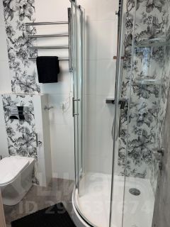 * Ванная: Акриловый поддон с стеклянными дверцами, Сантехника фирмы Roca и Kerama Marazzi, электрический полотенцесушитель.