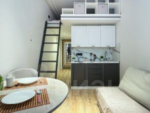 Комфортная 2х ярусная Мраморная студия С ВАННОЙ в цоколе (площадь: 16 кв м первый уровень + 6 кв м второй уровень) в здании в стиле Лофт.