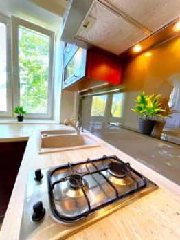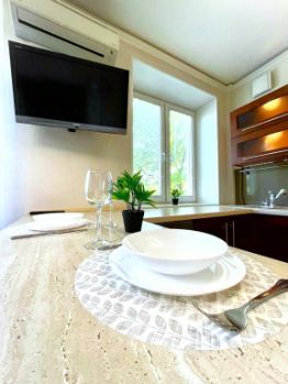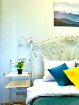 Квартира оборудована для комфортного проживания и подходит для размещения до 4 гостей. Есть двуспальная кровать размером 160x200 см и раскладной двуспальный диван размером 160x200 см. В квартире есть Wi-Fi, кондиционер, 2 телевизора: в гостиной — с цифровым ТВ. Кухня со всей необходимой посудой и техникой: холодильник, микроволновая печь, чайник, духовой шкаф, посудомоечная машина. В распоряжении гостей также стиральная машина, утюг, фен, гладильная доска и пылесос. Предоставляются постельное бельё и полотенца, шампунь, гель для душа, стиральный порошок. На кухне и в ванной подогреваемые полы. Также в квартире имеется водонагреватель, джакузи и застеклённый балкон.