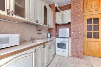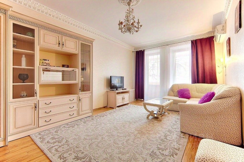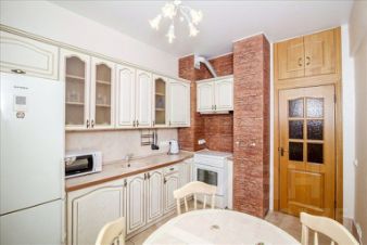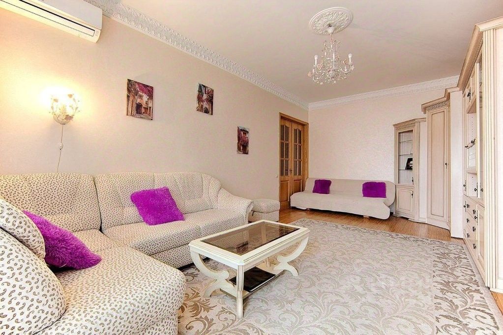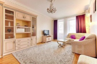 Просторные апартаменты 57 кв. м., спальные места 2+2+2, расположены на 3 этаже 8 этажного сталинского дома. Размещение до 4 человек.