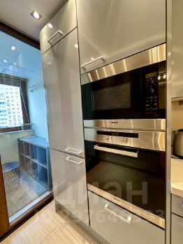 На кухне встроенная техника: холодильник, духовой шкаф, микроволновая печь, вытяжка. Установлен фильтр на воду. Из кухни выход на лоджию. На лоджии есть возможность сушить белье, сушилка настенная.