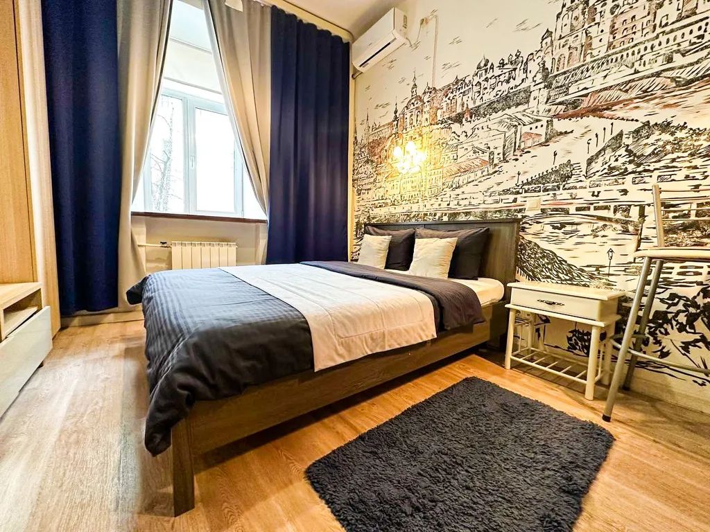Комфортабельная студия с современным дизайном. Спальная зона оформлена в спокойных тонах. Кухня оборудована всем необходимым для приготовления еды. Ванная комната оснащена стильной душевой кабиной.