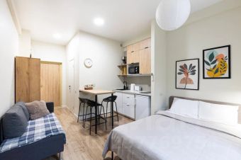 В наших апартаментах есть всё необходимое для комфортного проживания: свежее бельё, полотенца, туалетные принадлежности, посуда для приготовления, Smart TV и многое другое.