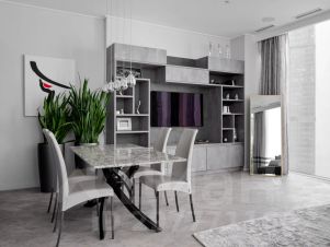 Апартамент включает просторную кухню-гостиную, где можно смело разместить до 10 гостей. Диван не раскладывается, однако если ваши гости не захотят уезжать, то легко смогут разместиться на нем с ночевкой!