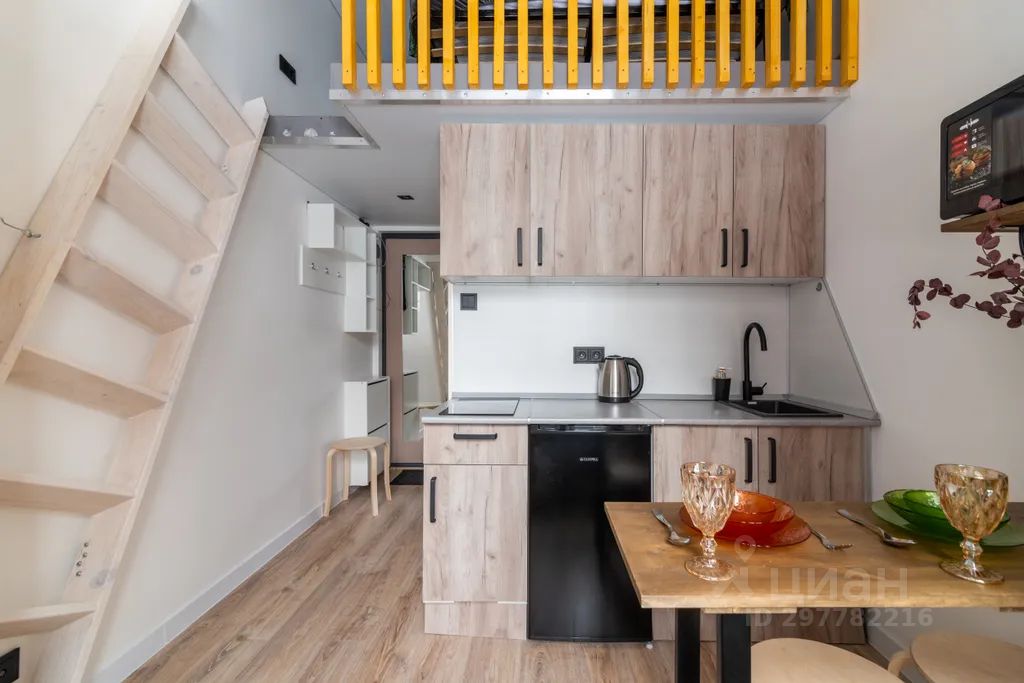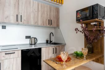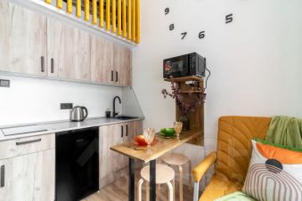 Оборудованная кухня с индукционной плитой, холодильником, микроволновкой и электрическим чайником;