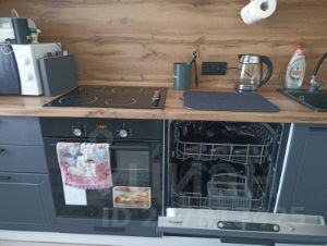 Кухня оборудована всей необходимой мебелью и бытовой техникой (мебельный гарнитур, холодильник, варочная панель, духовой шкаф, посудомоечная машина, эл. чайник, микроволновка).