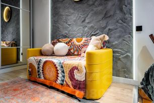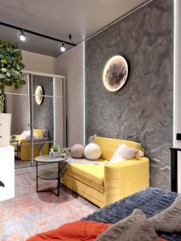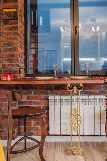 Из окна кухни вы можете наблюдать Паровозное депо Подмосковная исторического музея старинных паровозов у МЦД Красный балтиец и ДЕПО ласточек от РЖД, которые переплетаются в дизайне квартиры. На кухне располагаются современная микроволновка в ретро стиле, электрическая плита, холодильник и все необходимое для готовки, включая посуду и столовые приборы.