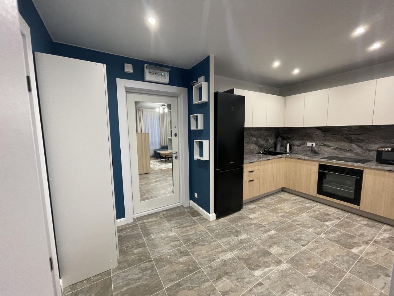 После приемки квартиры у застройщика произведена замена входной двери на железную дверь с шумоизоляцией и встроенным зеркалом, напольного покрытия на кухне и в холле, межкомнатных дверей, розеток и выключателей для большего комфорта при проживании.
