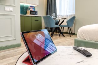 В студии сделан современный дизайнерский ремонт со следующими удобствами и не только: