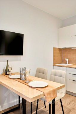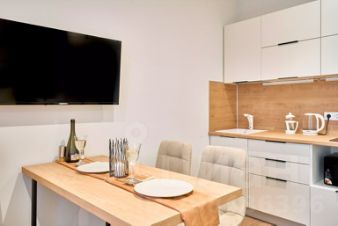 Апартаменты подходят для размещения 2 гостей. В распоряжении гостей: кухонный уголок, посуда, плита, микроволновая печь, холодильник, чайник, чай, кофе, сахар, соль. Имеется бытовая техника: телевизор, фен, утюг, стиральная машина, кондиционер. Также доступны: Wi-Fi, телевизор Smart TV, постельное бельё и полотенца, шампунь, гель, мыло, стиральный порошок.