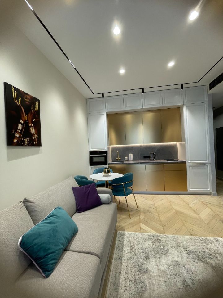 В квартире выполнен дизайнерский ремонт с использованием дорогостоящих и высококачественных отделочных материалов ,предметов мебели и техники.