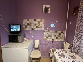 * На кухне есть необходимое (плита,холодильник, микроволновка,чайник, чайник для заваривания чая, набор посуды и приборы,сковорода, кастрюля.