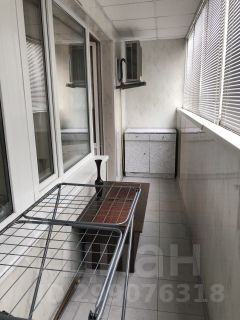 Лоджия 7 кв.м на всю квартиру. Остеклена. На балконе установлена сушилка, тумба и стеллаж для хранения.