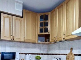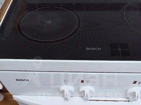 Кухня с множеством шкафов, укомплектована плитой Bosch со стеклокерамикой и духовкой, СВЧ, чайник. Большой двухдверный холодильник в проходном коридоре.