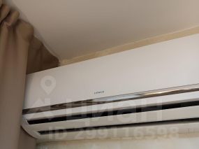 В спальне двуспальная кровать с большим матрасом 160*200 на ортопедическом основании, шкаф для одежды, зеркало, кондиционер Hitachi и рабочее место.